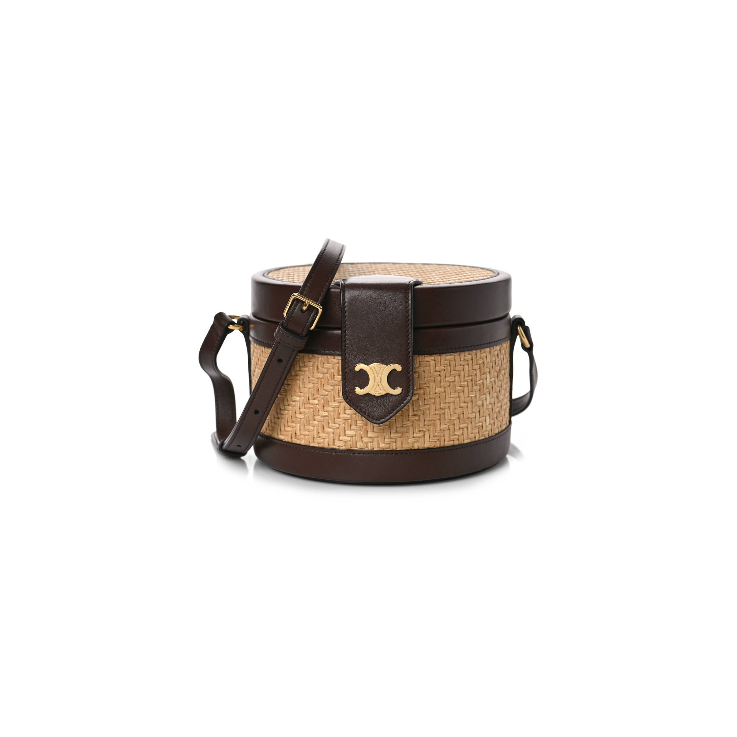 Ce**e raffia calfskin triomphe medium tambour bag natural (18*18*12cm)