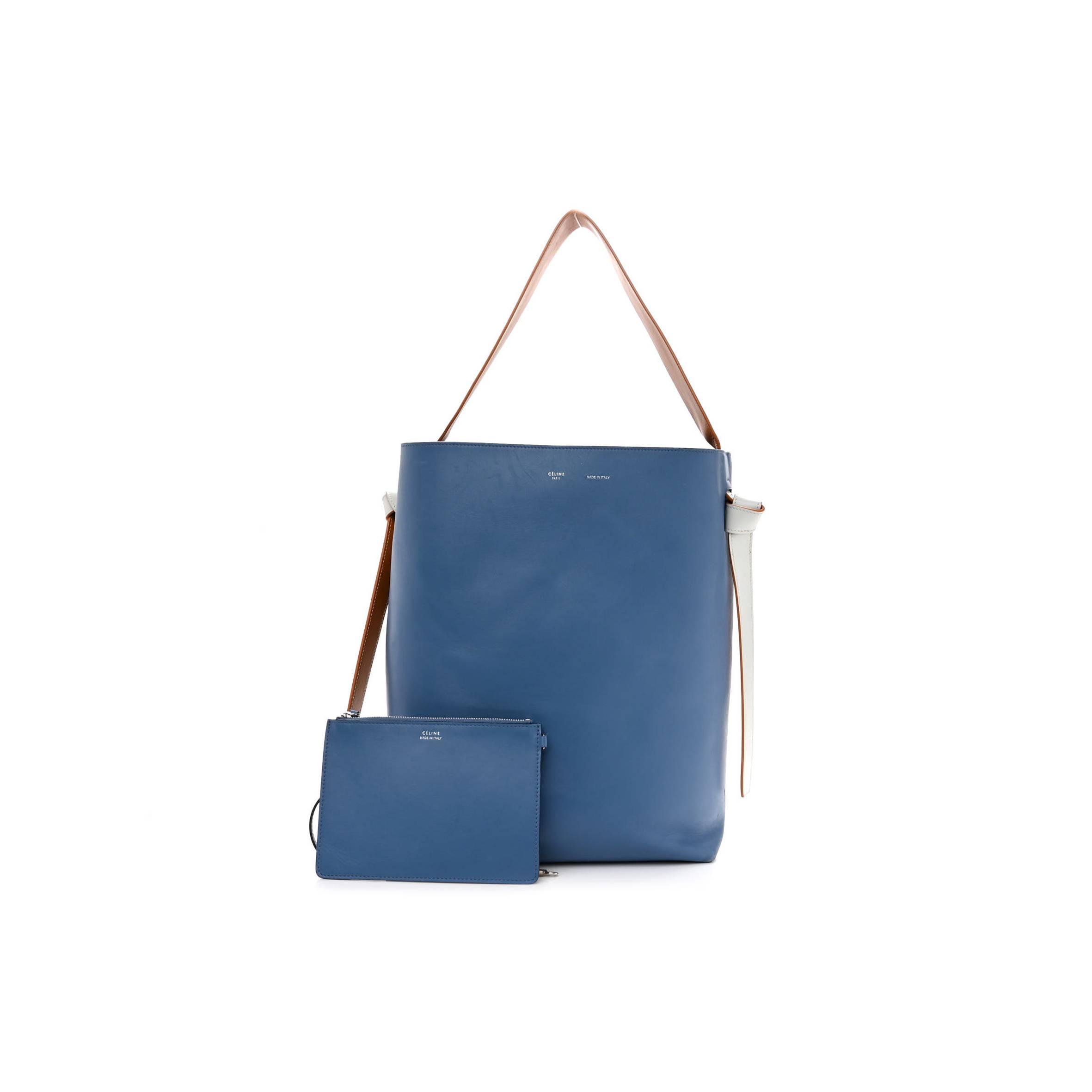 Ce**e shiny smooth calfskin small twisted cabas washed blue black (36*26*11cm)