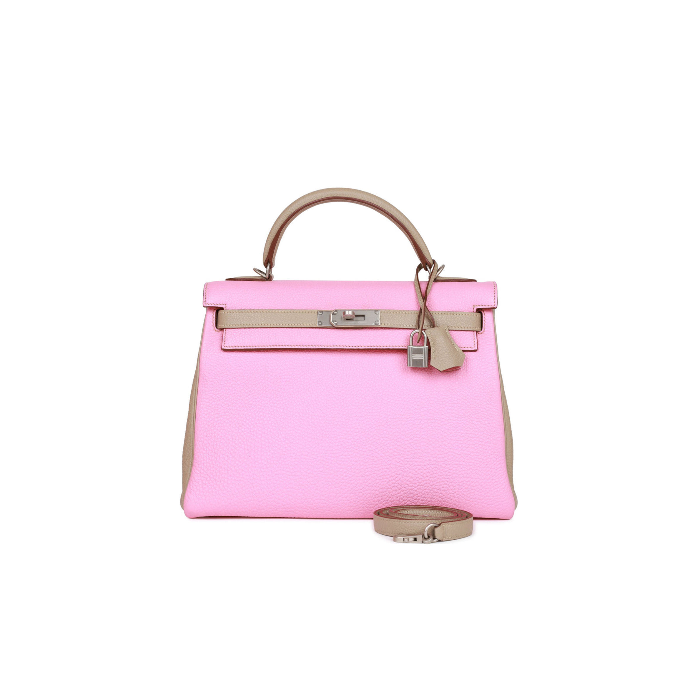 H**mes special order (hss) kelly retourne 32 bubblegum and gris tourterelle clemence brushed palladium hardware (32*23*10.5cm)